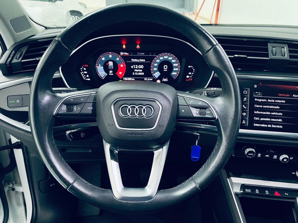 Este Audi Q3 Sportback Black line combina elegancia deportiva y practicidad con su distintivo diseño coupé. Equipado con el eficiente motor diésel de 150 CV y cambio automático S tronic de doble embrague, ofrece un equilibrio perfecto entre rendimiento y consumo contenido de 4,9 l/100km.